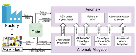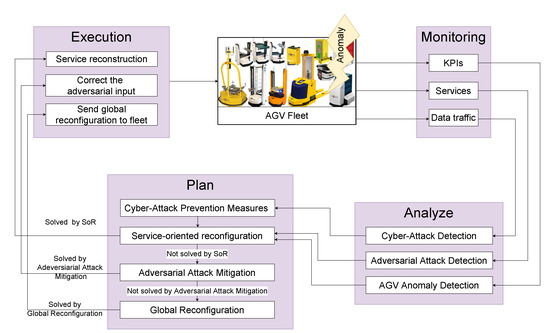 Once the anomaly is detected within the FoF, following the defined process in the previous section, a proper mitigation action should be initiated to either remove the malfunction behavior or reduce its negative impact to the minimum. In general, depending on the identified anomaly, the FoF behavior should react accordingly. Therefore, different types of mitigation actions are required to address different types of anomalies within the FoF. The so-called adaption can for instance be planned and deployed through reconfiguration, either locally at the level of each AGV or if necessary globally at the level of the fleet. Furthermore, from the security perspective, all the deployed mitigation actions would be worth nothing if AGVs have no solid and trusted computing base. Thus, avoiding malicious instructions that could lead to an undesired or dangerous AGV state and mitigation against adversarial and cybersecurity attacks is essential to ensure AGVs’ trustworthiness and improve their security. Within this section, different types of mitigations addressing the above-mentioned anomalies will be described.