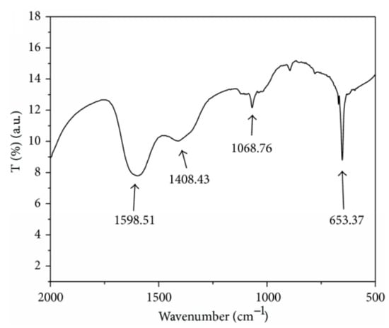 The as-deposited and annealed films (250 °C, under air, 30 min) showed an amorphous phase and polycrystalline nature with the hexagonal structure [52]. The glass substrate was modified by using 3-mercaptopropyltrimethoxysilane to produce good-quality films [53]. The results showed that a faster deposition rate could be observed in the modified substrates. Cadmium chloride and thiourea were used to produce thin films at 80 °C under different deposition cycles [54]. The results of the XRD studies confirmed that the crystallite sizes (12.44 to 14.65 nm) and absorbance edge (525 to 555 nm) increased with increasing the deposition cycles (20, 30, and 40 cycles). Cd(II) organic salt, such as cadmium 2,4-pentanedionate (C10H14CdO4), was used to produce films on glass sheets [55]. The XRD analysis revealed that these films were polycrystalline in nature with various particle sizes (20–80 nm). Garadkar and co-workers [56] reported that homogeneous nanostructured films could be observed when the deposition cycles reached 125 cycles during the experiment. The research findings also revealed that conductivity increased when the temperature increased and the specific conductance was 10−4 to 10−2 (Ω·cm)−1. Cadmium acetate and ammonium sulfide ((NH4)2S) served as cationic and anionic precursors, respectively, during the formation of the films at room temperature [57]. TEM and EDX studies confirmed the average particle size was 23.5 nm and the existence of cadmium and sulfur elements. FTIR spectra showed several peaks in Figure 3, such as 653.37 cm−1 (CdS stretching frequency), 1068.76 cm−1 (), 1408.43 cm−1 (S=O), and 1598.51 cm−1 (C-C stretching vibration).