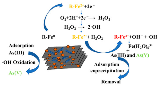Arsenic (As(III)) poses a serious ecological concern due to its toxicity and prevalence in the environment [1,2]. The metalloid properties of arsenic mean that when talking about the environmental problems that it causes, heavy metal pollution is commonly brought up. Arsenic-containing wastewater is widely sourced from industrial activities, such as electroplating, chemical, mining and smelting with poisonous, migratory, and carcinogenic, causing substantial environmental issues and even considerable human health risk [3]. To prevent the negative effects of As(III) on the environment, the World Health Organization set a maximum of 10 μg/L for arsenic in the international drinking-water standards [4]. Thus, purifying arsenic-containing wastewater is one of the most critical environmental issues that needs immediate attention.