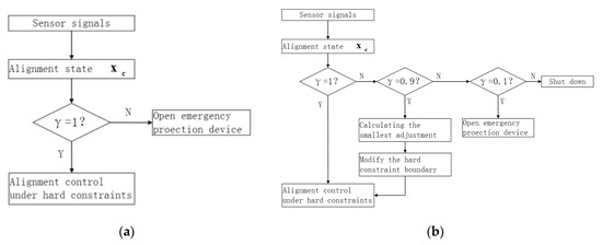 Control flow chart: (a) The alignment control method under hard constraints; (b) The alignment autonomous control method.