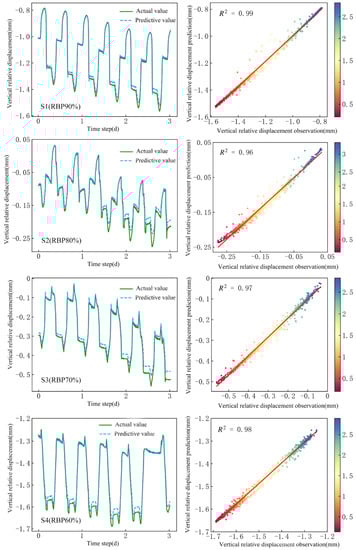 where is the matrix of input weights, is a vector of bias, and represents a logistic sigmoid function. The four groups of soil–rock mixture samples were all frozen and thawed 20 times, and each group of experiments lasted 10 days. The LSTM model took the data of the first 7 days of each group of experiments as the training set, and the last 3 days of experiments as the test set. The deep learning method of the neural network predicted the effect in the freeze–thaw cycle test of the soil–rock mixture.