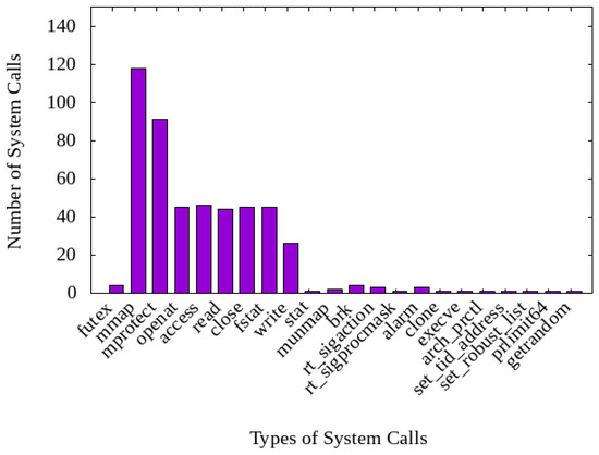 In order to assess the feasibility of the idea of using system call information for container resource management, a typical scientific workflow task was repeatedly executed, and an experiment was conducted to determine whether a consistent system call pattern appears. We selected the Linux kernel build task for observation. System call data generated in the OS kernel were collected using the Strace tool while performing the Linux kernel build task. The task was executed in the Singularity container runtime environment [9]. The task was run five times, and the same result was obtained. Figure 1 shows the name and number of system calls that were generated by the Linux kernel build task.