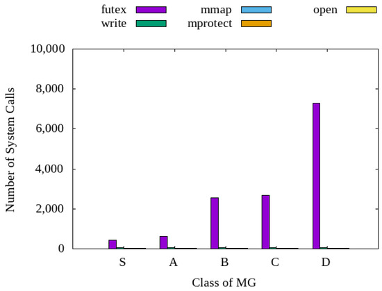 As shown in Figure 2, we observed that the futex system calls increased in proportion to the size of the IO-intensive task and showed a consistent pattern. In particular, a large change in the number of system calls occurred in the section where the number of iteration operations of MG work was changed. Consequently, we confirmed that the ratio of the IO-intensive operation of the task executed in the container runtime can be derived using the number of occurrences of the futex system call.