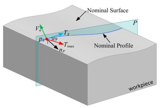 As shown in Figure 7, the vector is on plane , which is the tangent vector of the nominal profile at . can be expressed in the form below: