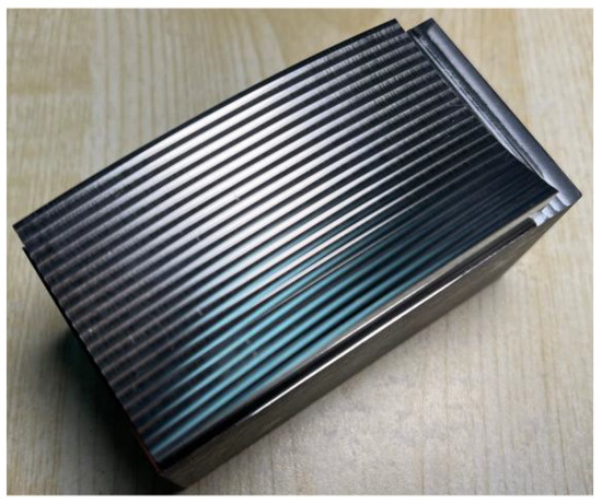 In the present study, a bull-nose cutter with the same parameters as above was used in a machining experiment of a free-form surface obtained from the blade model. The CC path was generated according to the iso-parameters, the inclination angle was , and the tilt angle was at any CC point. The spindle speed was 4000 rpm, and the feed rate per tooth was 0.03 mm/tooth. The workpiece’s material was 2Cr13, and the machined workpiece is shown in Figure 17.