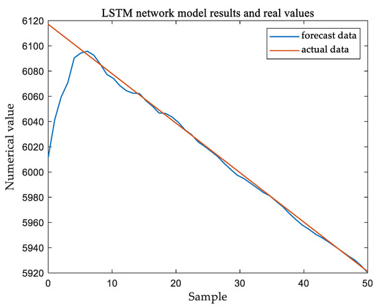 Model simulation was performed on the sample data with the established prediction model: since the LSTM neural network fitting is stochastic and the results vary slightly from run to run, the data were recorded when the training error [34] was minimal. The network model eventually converges.