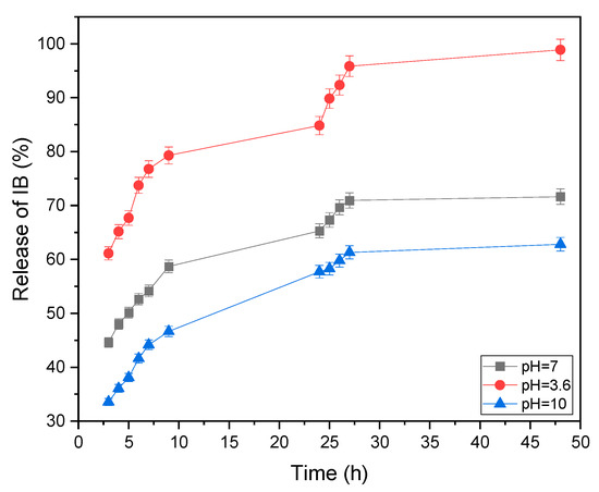 3.3. In Vitro Reduction-Triggered Release of IB from the PCD-Zeolite in a Phosphate Buffer