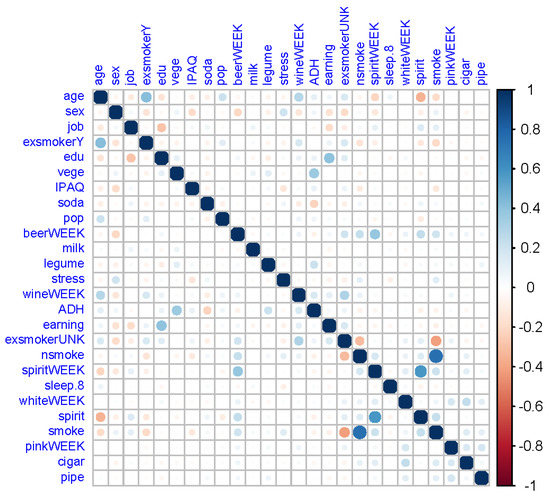- Seven variables on smoking habits, such as number of cigarettes, pipes, cigars. For ex-smokers: time since a smoker quit smoking;