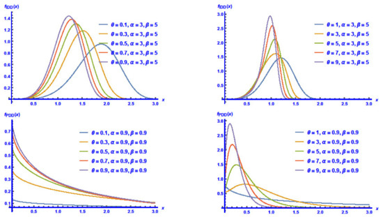 f P D D ( x ; α , β , θ ) = β   θ   2 α 3 2 α 2 + θ 2 x β 1 4 α 4 + θ 4 x 2 β e θ x β α , x > 0 ,   θ > 0 , β > 0 , α > 0 .