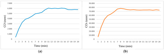 The CO2 concentrations in the same region are shown in Figure 16 (minutes 1–4) and Figure 17 (minutes 5–20).