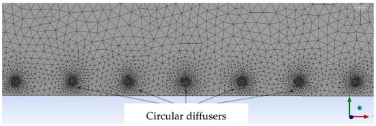 Figure 10. Refined mesh near the circular diffusers of the station ventilation system.