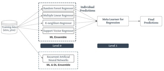Figure 2. Diagram of the stacking proposed approach for the ML ensemble and in addition to the DL algorithm, which will constitute the ML & DL ensemble.
