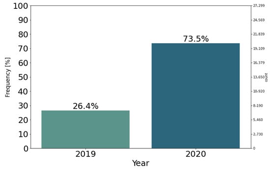 The dataset contains observations collected from two years: 2019 and 2020. Figure 3 depicts the distribution of the data throughout the years. In 2020, there was an increase in email delivery over the previous year, 2019.