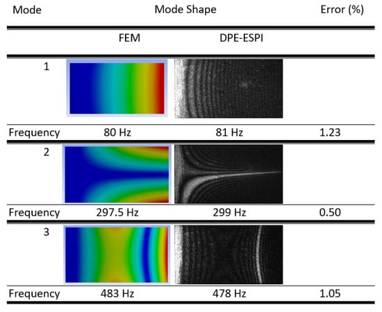 Figure 7 shows a PVEH plate with dimensions 57.3 mm × 31.8 mm × 0.51 mm fixed at a rectangular bluff splitter body (2 mm × 31.8 mm × 30 mm). The first three fundamental resonant frequencies, i.e., first bending mode, twisting mode, and second bending mode under Direct Piezoelectric Effect (DPE), when it was excited by an electrodynamic shaker, were recorded at 81 Hz, 299 Hz and 478 Hz, respectively, by amplitude-fluctuation electronic speckle pattern interferometry (AF-ESPI).