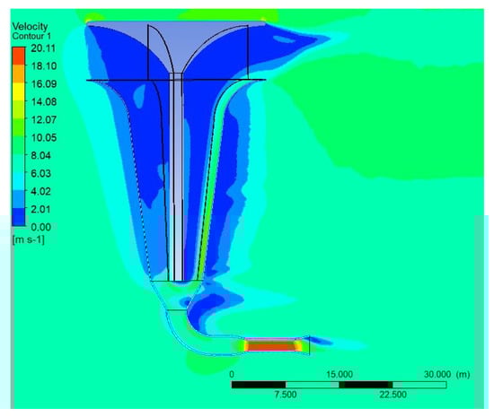 In recent years, many works have reported on the study of the INVELOX design, to further enhance its performance through some modifications and configuration changes. Anbarsooz et al. studied the effects of several geometrical parameters affecting the aerodynamic performance of the INVELOX. It was found that the area contraction at the venturi, the inlet area, inlet height, and funnel height have a considerable effect on the SR. Meanwhile, the wind speed has negligible effect on the SR []. In 2019, Anbarsooz et al. then proposed a few possible curtain designs to reduce or fully eliminate this escaping air. It is noted that the best design can lead to a 25% increase in the average wind speed inside the venturi and achieve a maximum SR of 1.95 []. Gohar et al. proposed to reduce the diameter of the venturi throat, and the wind speed at the venturi section was increased with an SR of 2.3 []. Meanwhile, Sotoudeh et al. revealed that by increasing the assemble height, i.e., a two-storey INVELOX, it was found to be effective to reach higher performance than the conventional design, with an SR of 1.90 []. The effect of geometric changes in the nozzle–diffuser section was further investigated by Hosseini et al. Some geometrical changes were applied, including changes in the nozzle length, diffuser length, and diffuser-opening angle, and by replacing the conical nozzle with an ideal one and adding an exit flange. However, the best SR obtained was 1.67 in this study []. In Ding’s study, the flow-field characteristics of increased speed in INVELOX system under different wind directions were studied. It was found that after considering the atmospheric boundary layer (ABL) wind profile, the SR of the system decreased. The best SR obtained in this proposed design was 1.9 []. A study conducted by Nardecchia et al. proposed several possible configurations for the INVELOX system. It was found that the lower cone and elbow sections and the presence of the duct with a constant section after the elbow had led to unsatisfactory results. In addition, the introduction of a constant section after the venturi section decreased system performance. Meanwhile, optimal performance could be obtained by changing the convergent–divergent diameter. From this study, the best SR obtained was 1.74, which was slightly lower than the first design [].