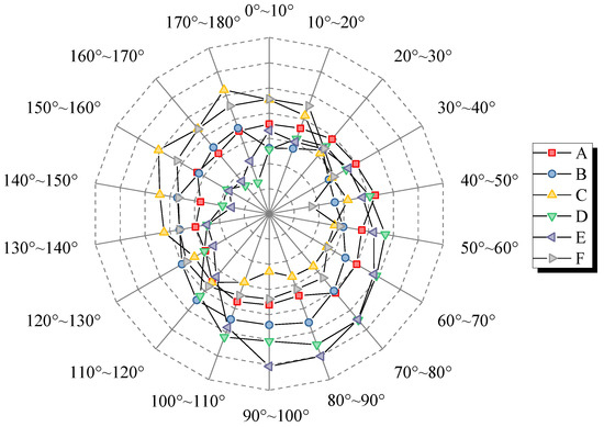In order to represent the changes in the distributional intensity of the unit body in a certain direction, 0°~180° is divided into n equal parts (locations), and the angle range of the representative director of each location is . From this, the directional frequency of the i-th location unit body in the n locations ranging from 0° to 180° can be obtained: