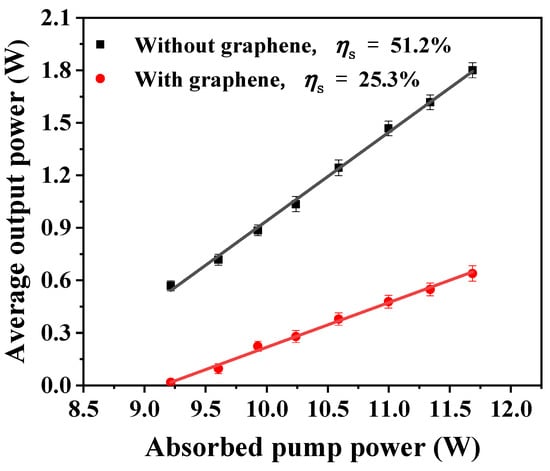 Figure 2. Average output power vs. the absorbed pump power with and without the graphene.
