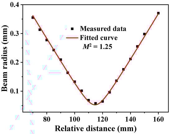 The beam quality factor, M2, in the Q-switching operation was studied at the average output power of 639 mW, taking advantage of the knife-edge method. Figure 6 shows the laser beam radii depending on their location relative to the focal lens, which was used for leading out the waist of the oscillating beam in the cavity. Through Gaussian fitting, the M2 factors was calculated to be 1.25.