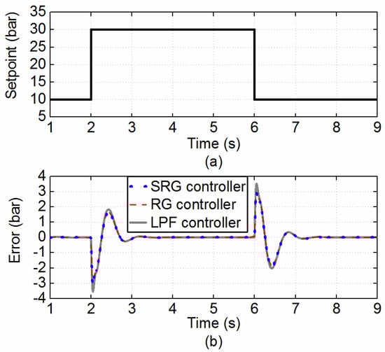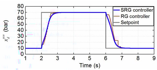 - A third controller conducting pressure tracking without a reference governor. The impact of the reference governor was simulated by a first-order low-pass filter (LPF) with a 0.17 s time constant.