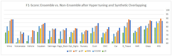 24]. As a third contribution, an algorithm was designed to synthetically generate overlapping samples in the existing dataset by 20% of the existing samples to make it more complex and overlap to highlight the impact of parameter tuning. The comparison of ensemble and non-ensemble classifiers was carried out on 15 publicly available multi-class imbalanced and overlapped datasets.