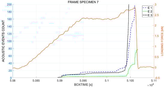 The acoustic emission method (AE) is a non-destructive method of monitoring specimen damage. The working principle is to detect the elastic stress wavefronts which are propagated in a component, generated by the dynamic release of mechanical stress inside the material body—acoustic emission events [33]. These events occur with the displacements of dislocations, dynamic micro-crack formations, etc., and propagate in the specimen as both dilatation and shear waves. These waves are detected by the piezoelectric AE sensors. They are then converted from the mechanical deformation to the corresponding electrical signal, which needs to be amplified, transmitted, processed and stored by the measuring device. The amplification of the detected signal is an important factor that prevents possible interference of the signal being measured. This can be caused by the influence of the environment and the transmission of the electrical signal [34].