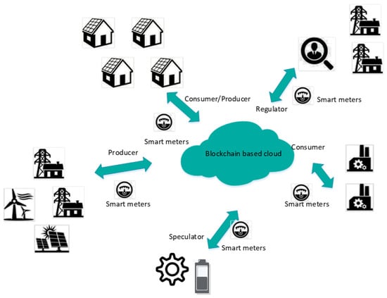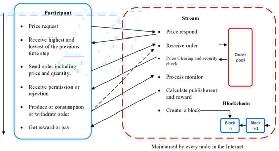 The demand of energy is growing worldwide, and this has to be met in a more environmental way, which has promoted the rapid development of distributed energy systems [1]. Moreover, the rapid development of technology has brought about a significant price reduction of photo voltaic panels and wind turbines, which led to the thriving of small-scale power plants. It is expected that most homes will be equipped with small-scale solar panels and wind turbines [2,3,4]. In the visible future, they can not only realize energy self-sufficiency but also can make profit by selling excess energy to the main grid. Meanwhile, a large number of autonomous systems brings scheduling difficulty to the central operator and affects grid security. Establishing a central operator will lead to a lot of problems, including high cost, low information security and personal privacy leakage [5,6]. Therefore, it is difficult to use the current centralized framework to operate future energy systems. In order to extract the most value from this trend, there is a need for understanding the future energy trading mechanism. Fortunately, the use of smart meters can realize autonomous bidirectional energy flow [7]. Nevertheless, considering the drawback of the existing trading process, a more suitable trading framework is needed to cope with the increasing number of entities who want to play a more important role in the energy market instead of being a passive buyer.