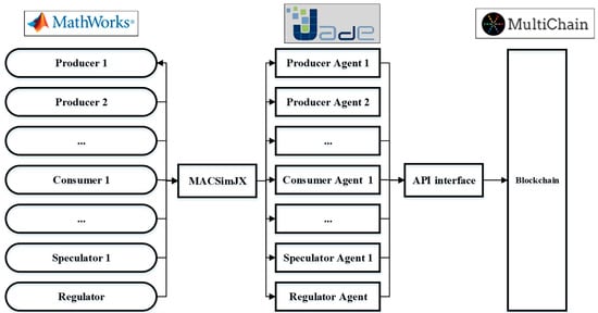 The example was implemented on a Windows 10 computer using the multi-agent simulate platform JADE to simulate the multiple roles. JADE (Java Agent Development Framework) is a software Framework which distributed by Telecom Italia [19]. Multichain was used to establish a blockchain [20]. The test platform is shown in Figure 6.