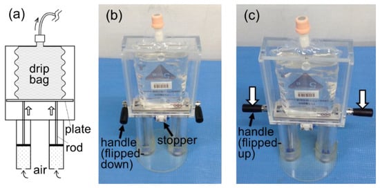 - Kano, C.; Hiroura, M. Infusion Bag Pressurizing Apparatus. Japan Patent JP2004230032A, 19 August 2004. [Google Scholar]