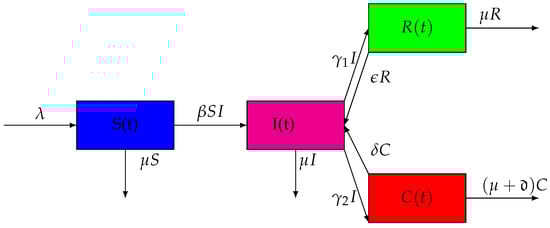The first SIR model describing the dynamics of the three principal populations: the susceptible , the infected and the recovered , was studied by Kermack and McKendricks in 1927 (see []). Their proposed model played a cruciel role in initianting different research works in the field of disease dynamics. Based upon the natural history of hepatitis C, a recent study proposed a Susceptible–Infectious–Chronic–Recovered (SICR) type model (see []).
