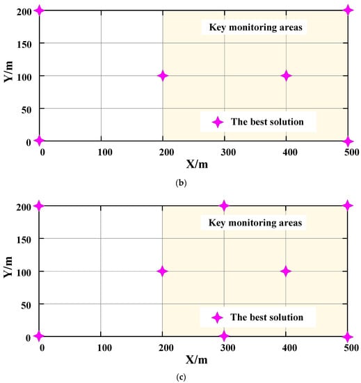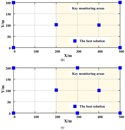 Network configuration results solved by EA. (a) Solution Results of Scheme II. (b) Solution Results of Scheme II. (c) Solution Results of Scheme III.