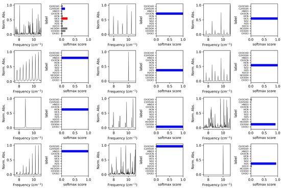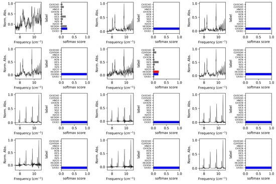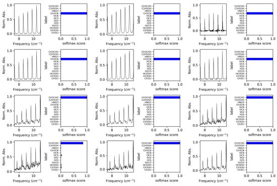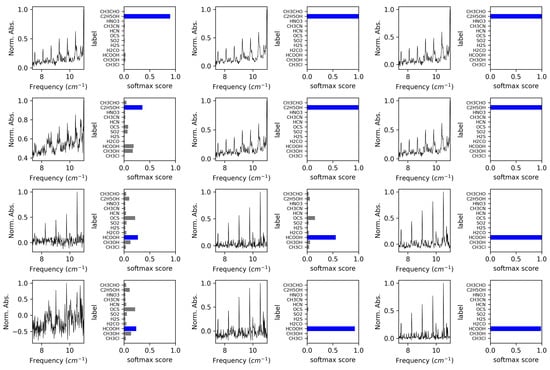 VOC-Net classification of experimental spectra (13–24). The corresponding softmax scores for each classification are given with each spectra.