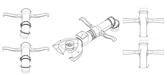 The reduced-scale F-35B aircraft (as shown in Figure 1) adopts the propulsion system composed of the three-bearing swivel ducted (3BSD) nozzle and the lift fan, as shown in Figure 2, and the main parameters are given in Table 1. In the cruise mode, the 3BSD nozzle points backward to provide the forward flight power, while in vertical mode, the 3BSD nozzle deflects 90 degrees downwards with the lift fan activated to generate the required lift together. In the vertical mode, the pitch channel is controlled by the speed of the lift fan and main ducted fan, which provides pitch stability and control efficiency. The roll channel is driven by the two side nozzles, whose airflow is controlled by the roll control mechanism. The yaw channel can be controlled by deflecting the 3BSD vector nozzle in the lateral planes.