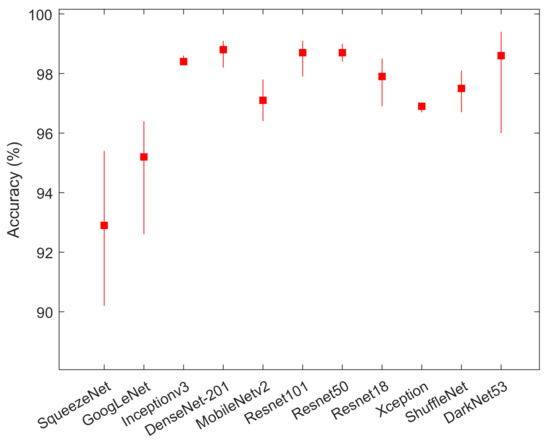 - Iandola, F.N.; Moskewicz, M.W.; Ashraf, K.; Han, S.; Dally, W.J.; Keutzer, K. SqueezeNet: AlexNet-level accuracy with 50x fewer parameters and <1MB model size. arXiv 2016, arXiv:1602.07360. [Google Scholar]