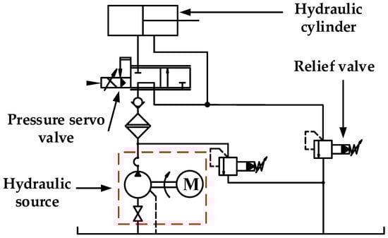 The hydraulic schematic diagram of PSVS is shown in Figure 1. The hydraulic cylinder is used to simulate the load, and the relief valve is used to adjust the backpressure of the system.