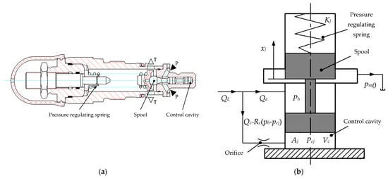 The relief valve: (a) The structure of relief valve, (b) The simplified principle of relief valve.