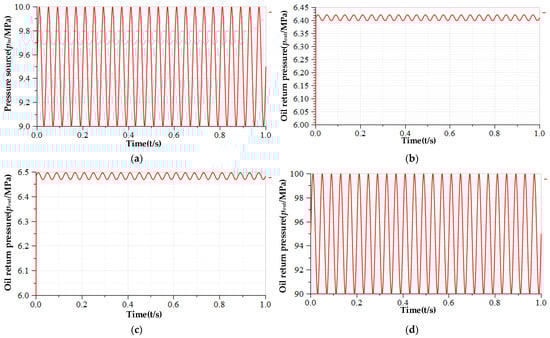 (2) The input flow Qin determines the amplitude of the dynamic backpressure. The larger Qin is, the farther the backpressure deviates from the set value of 0.6 MPa. Therefore, the larger the negative xv is, the more obvious the backpressure ph changes.