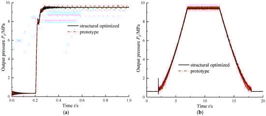 It can be seen that, compared with the prototype system, the output pressure of the PSVS does not oscillate under either the step signal or the ramp signal input, which means that the self-excited oscillation of PSVS is effectively eliminated.