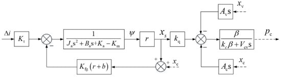 The control block diagram from the buildup pressure pc to the main valve spool displacement xv can be obtained as shown in Figure 21.