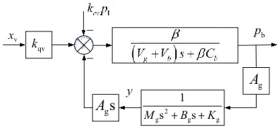 The control block diagram from the power stage spool displacement xv to the output pressure pb can be obtained as shown in Figure 22.