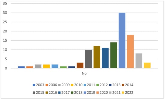 The distribution of the considered papers in the period of time between 2003 and 2022.