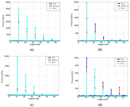 - Among all amplitudes of the frequency components, order is the largest, and the amplitude of the other component () decreases with the increase in ;