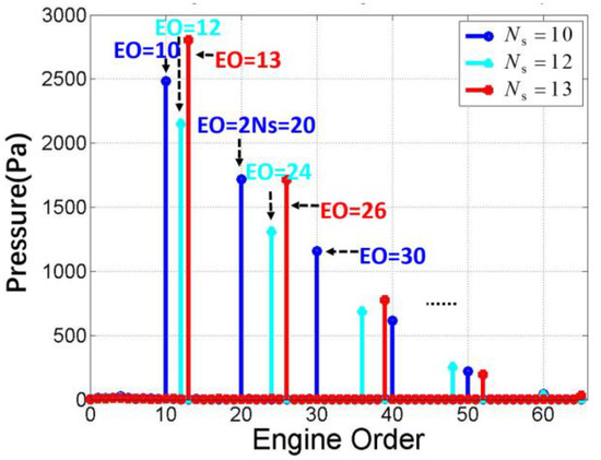 - The excitation generated by the stator with the period number of on the downstream rotor blade includes each frequency component corresponding to the wake excitation order, namely, ;
