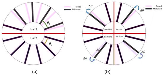 - Gottfried, D.; Fleeter, S. Passive detuning for HCF reduction. In Proceedings of the 38th AIAA/ASME/SAE/ASEE Joint Propulsion Conference & Exhibit, Indianapolis, Indiana, 7–10 July 2002. [Google Scholar]