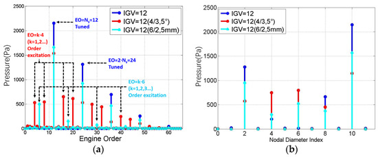 - Bréard, C.; Green, J.S.; Imregun, M. Low-Engine-Order Excitation Mechanisms in Axial-Flow Turbomachinery. J. Propuls. Power 2015, 19, 704–712. [Google Scholar] [CrossRef]