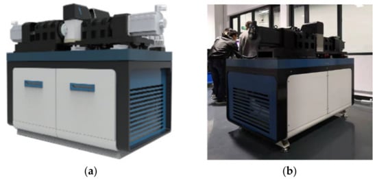 The structure of the self-developed RCF-A test machine. (a) 3D model, (b) Prototype.