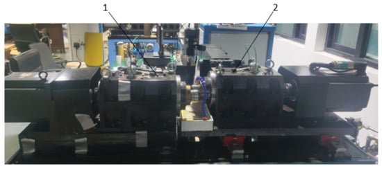 Schematic diagram of the shaft box of the RCF-A test machine. 1. Accompanying axle box; 2. Spindle box.
