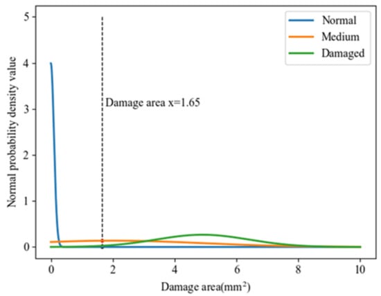 Therefore, the normal probability density values corresponding to the three states when the damage area in the identification frame is 1.65 mm2 are: