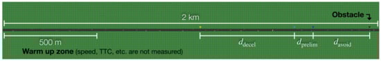 - The road length in the simulation environment is increased from to in order to provide sufficient free space before vehicles encounter an obstacle.