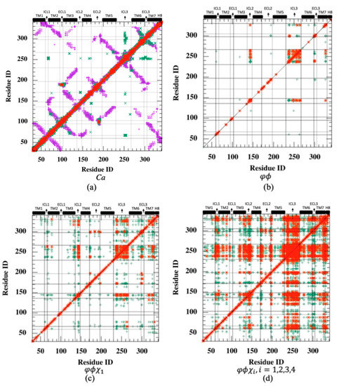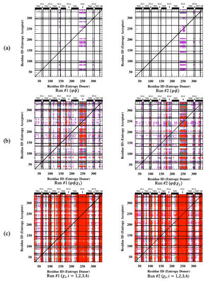 Figure 6c). All intra- and extracellular loops that extended slightly towards the neighboring helices were detected as important entropy donor sites. These results clearly represent that the conformational states of the side-chains at loop regions extensively dominated the future conformational states of side-chain torsion angles everywhere in the receptor.