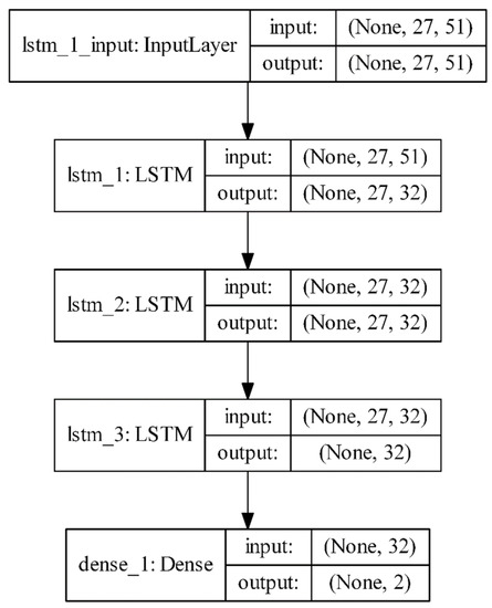 Figure 5 shows the training structure of the LSTM model in this paper, which mainly contains three LSTM layers with 32 neurons and one fully connected layer with the suitable number of neurons. The LSTM model extracts the anomaly information from input data for n consecutive days and uses it for time sequence analysis.